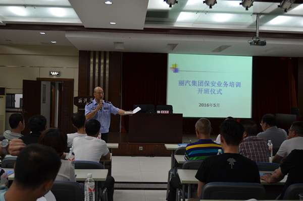 為切實(shí)做好G20峰會(huì)的安保工作,5月4日晚上六點(diǎn)半,麗汽集團(tuán)全體安全保衛(wèi)人員齊聚一堂,在總公司六樓會(huì)議室參加了安保人員資格考試的培訓(xùn)班,總經(jīng)理助理葉劍飛,客運(yùn)東站經(jīng)理江小華,安全保衛(wèi)稽查部經(jīng)理葉少華,特邀教官麗水市公安局治安支隊(duì)保安監(jiān)管大隊(duì)大隊(duì)長方勇平等出席開班儀式。