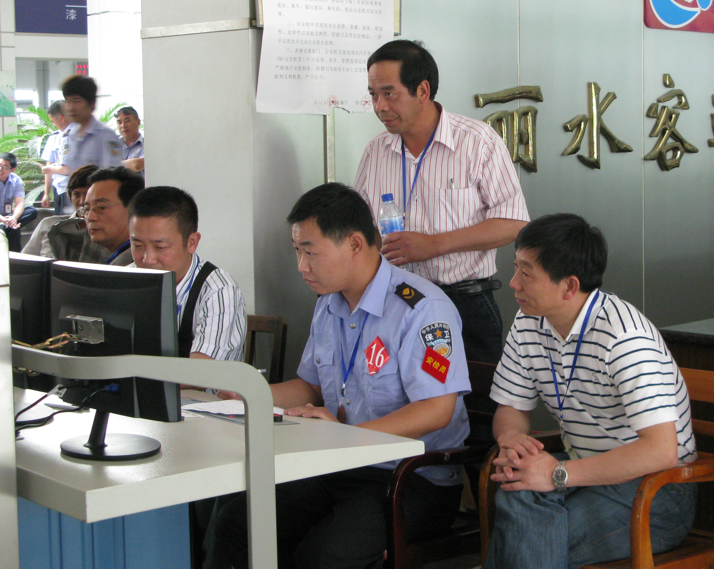 來自集團(tuán)下屬麗水客運(yùn)東、西兩站選派的20名保衛(wèi)稽查人員參加本次比賽,所用的危檢物品有汽油、火柴、香蕉水、農(nóng)藥、鞭炮、刀具、子彈、雷管導(dǎo)火線、油漆以及普通物品礦泉水、玩具等,賽前由評(píng)委裝箱,比賽時(shí)依次通過危檢儀,選手在規(guī)定的5分鐘時(shí)間內(nèi),對(duì)上述所有經(jīng)過危檢儀的物品進(jìn)行辨認(rèn),根據(jù)準(zhǔn)確率分別評(píng)出一、二、三等獎(jiǎng)。來自客運(yùn)東站的朱茂軍獲得一等獎(jiǎng),客運(yùn)西站陳鑫濤、范國祥獲得二等獎(jiǎng),客運(yùn)西站潘峰、李志勇、鐘韶華獲得三等獎(jiǎng)。