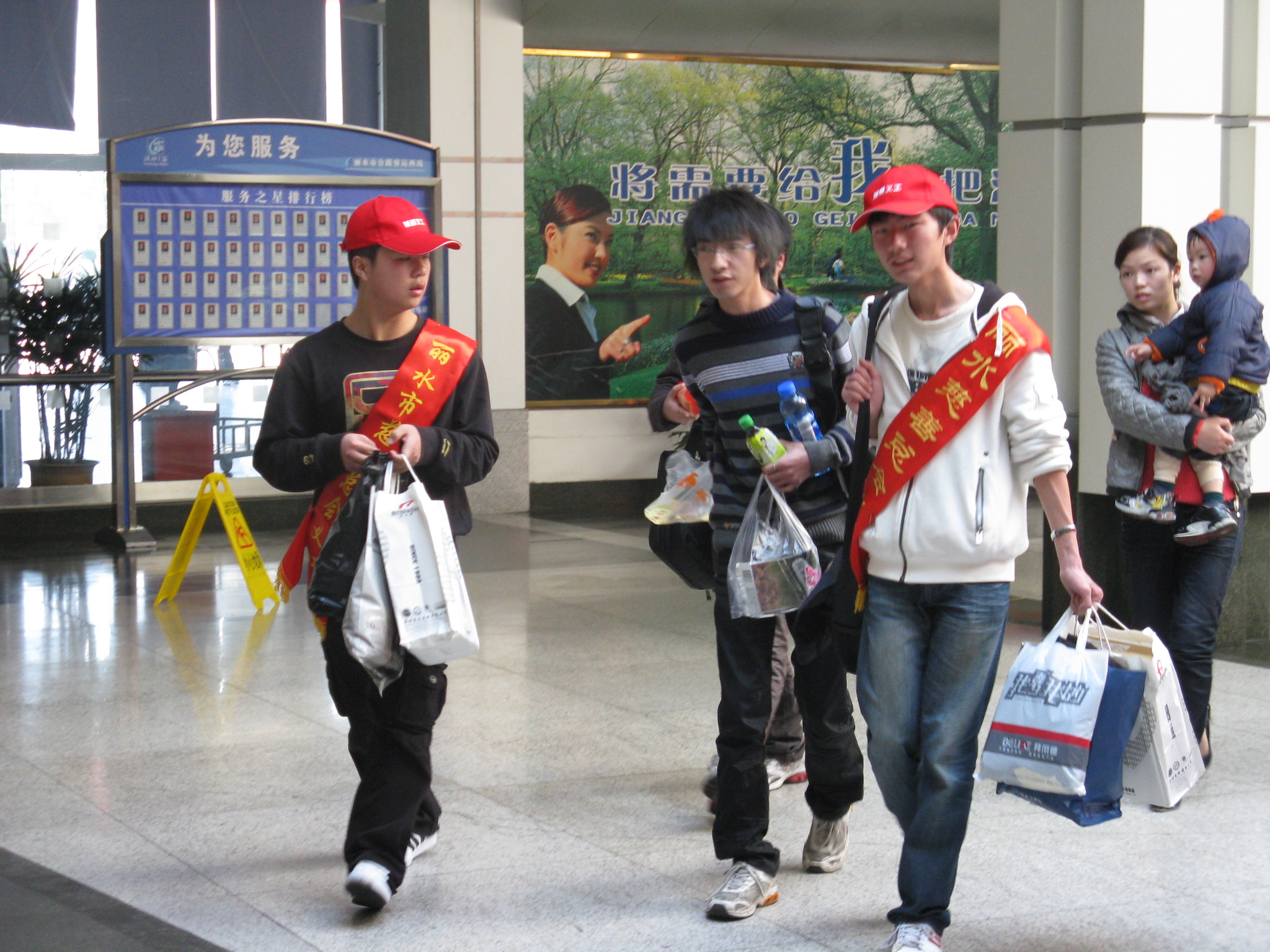 2月10日早,麗水客運(yùn)東站、客運(yùn)西站站場(chǎng)出現(xiàn)了一大批“小紅帽”,他們穿梭于售票大廳、候車(chē)室、發(fā)車(chē)區(qū)、下客區(qū)等處,有的熱情幫助旅客提行李;有的為在一旁候車(chē)的旅客送上熱騰騰的開(kāi)水;有的抱小孩扶老人上車(chē);還有的在危檢儀旁勸導(dǎo)旅客將行李進(jìn)行危檢。一個(gè)個(gè)忙得不亦樂(lè)乎!成了春運(yùn)現(xiàn)場(chǎng)的一道亮麗風(fēng)景。