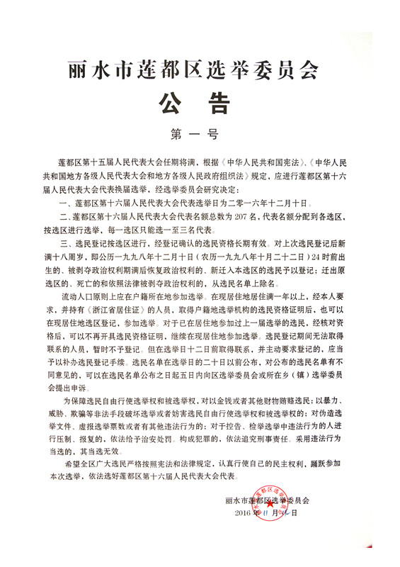 麗水市蓮都區(qū)選舉委員會(huì)公告(第四號(hào))