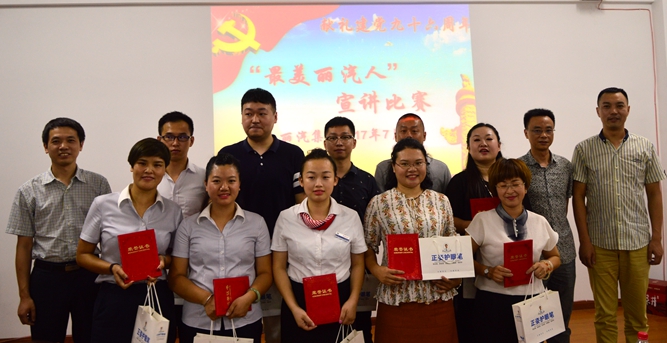 為了深化“最美麗水人”主題實(shí)踐活動(dòng),深入挖掘麗汽黨員員工在實(shí)施企業(yè)轉(zhuǎn)型升級(jí)、創(chuàng)業(yè)創(chuàng)新發(fā)展等重點(diǎn)工作中敢于攻堅(jiān)破難、敢于擔(dān)當(dāng)實(shí)干的先進(jìn)事跡和先進(jìn)人物,進(jìn)一步弘揚(yáng)麗汽“最美”精神,向黨的十九大獻(xiàn)禮,7月25日晚,麗汽集團(tuán)黨委、工會(huì)、團(tuán)委聯(lián)合組織開展了“最美麗汽人”主題宣講比賽。來自麗汽集團(tuán)及下屬單位的16名選手參加角逐。麗汽集團(tuán)黨委委員、工會(huì)主席、團(tuán)委書記等擔(dān)任評(píng)委。