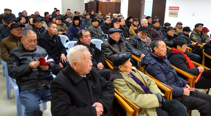 宣貫會前,工作人員還向參會的黨員同志發(fā)放了新版《黨章》,老同志們迫不及待地認真翻閱了新《黨章》。
