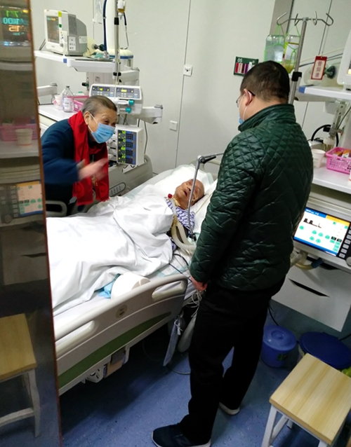 在溫州中醫(yī)院監(jiān)護室,一直處于半昏迷狀態(tài)的董周英當依稀聽知公司黨委書記、董事長前來看望他時,興奮地睜開了雙眼,流露著滿眼喜悅。葉茂輕輕握著董周英的手,衷心希望董老能提振信心,勇敢的邁過眼前這道坎。