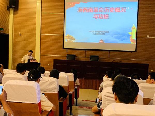 黨課由中共麗水市委黨史研究室的邱理平老師授課,他從唐公憲到遂昌創(chuàng)建中共組織開始,到第一個浙西南黨支部遂昌黨支部的成立,浙西南的革命部隊逐漸壯大,再到土地革命,在麗水的這片土地上,擁有了黨、政、軍、群團四大力量,可謂掀起了局部革命的小高潮,但還是迎來國民黨圍剿,麻植、蔡鴻猷、季步高等革命先驅(qū)相繼遇害,浙西南革命事業(yè)受挫。星星之火可以燎原,經(jīng)過不懈努力,遂昌縣工農(nóng)革命軍成立,是中國共產(chǎn)黨在浙西南建立的第一支革命武裝。革命的力量不斷壯大,浙西南作為大后方,為紅軍的戰(zhàn)略大轉(zhuǎn)移,起到了非常重要的作用。