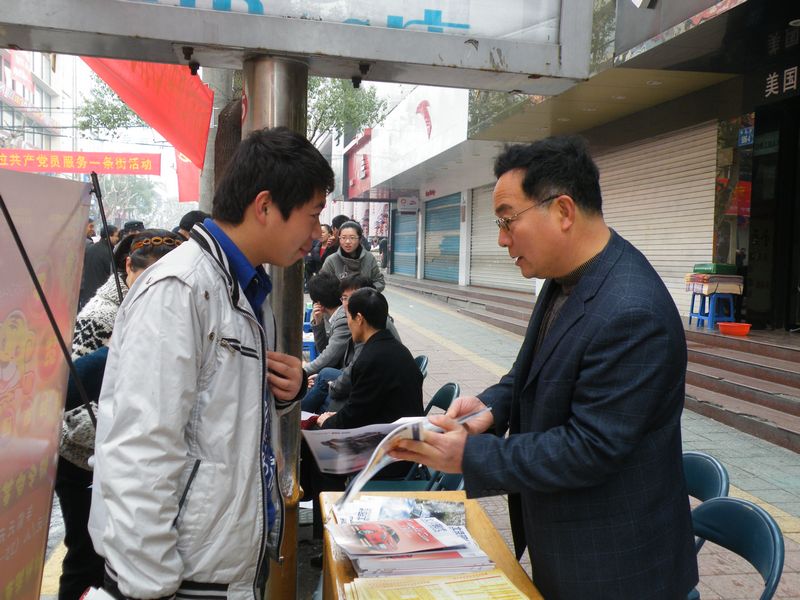 1月30日上午,根據(jù)市委的統(tǒng)一安排,集團(tuán)公司組織一行七人到中山街參加市直機(jī)關(guān)黨員服務(wù)一條街宣傳活動(dòng)。