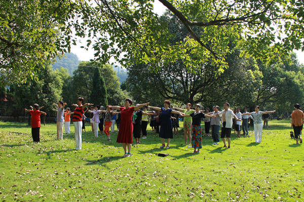 此次活動共有120多名體協(xié)會員參加,大家都想借此機會和大自然來個親密接觸,體協(xié)委員利用休息時間為大家采購了豐富美味的食物。利用新世紀綠草地依山伴水的地理資源優(yōu)勢,在秋日和煦的陽光下,在風景秀麗的南明湖邊,我們老年人在綠草地上展現(xiàn)了 “年輕人”舞步,跳著佳木斯健身操動作,擺動雙臂,邁開雙腳,走出健康,走出幸福。當走進餐廳看見桌子上擺好的餃子皮和餃子餡,老同志們便紛紛摩拳擦掌,躍躍欲試。他們各自分工后便熱火朝天的忙起來,現(xiàn)場笑聲不斷。