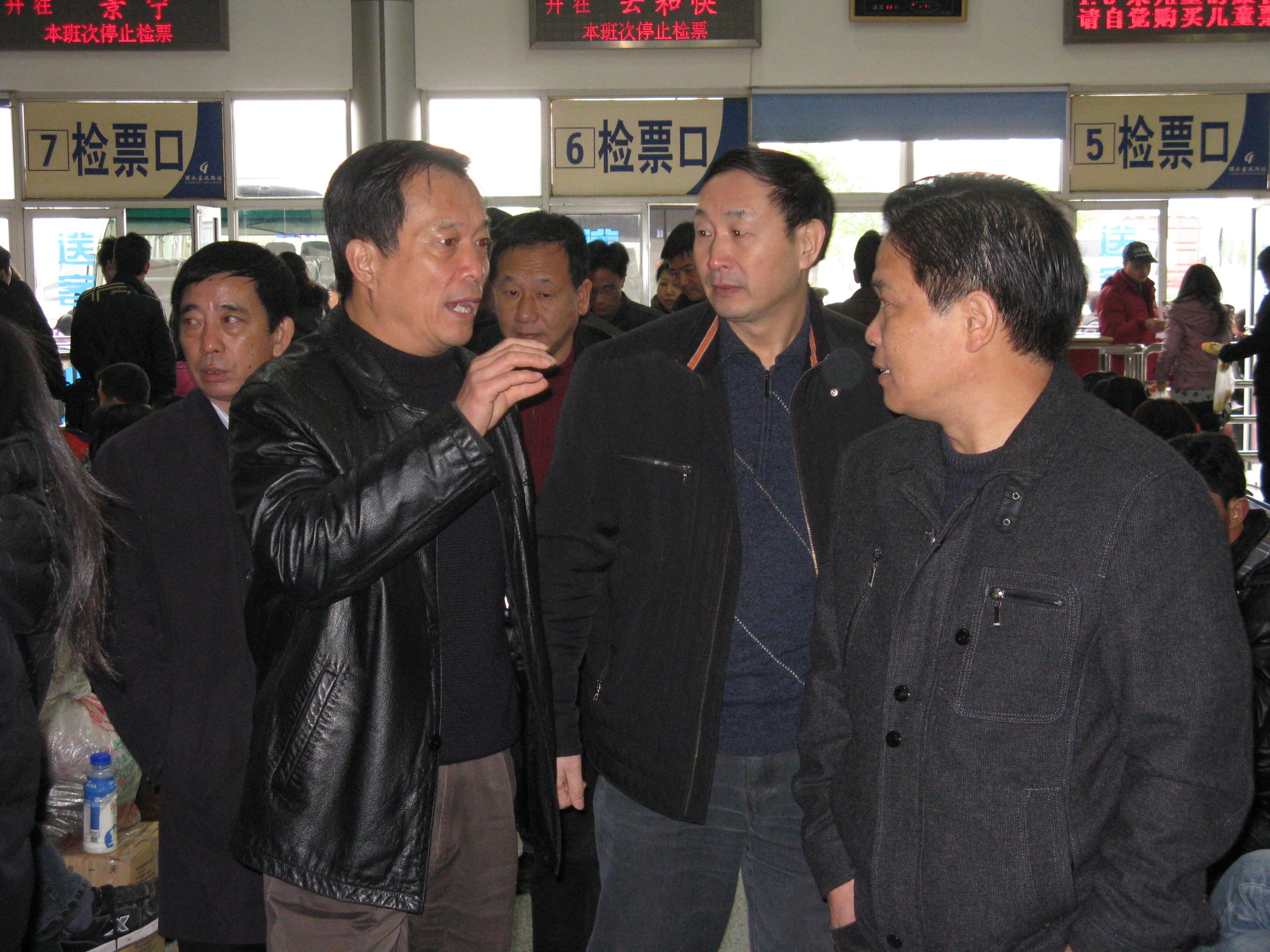 在春運運力調(diào)配中心,崔建宏局長詳細了解了集團公司在人員值班、運力安排、安全生產(chǎn)方面的工作。在進站危檢崗位前,崔局長還親切地握住了堅守崗位的運管和西站保衛(wèi)人員的手,向他們送上了新年的祝福,并交代危檢員,一定要做好工作,確保春運期間旅客安全。檢查期間,崔建宏局長要求集團公司以及全體運輸、站務(wù)工作人員繼續(xù)保持良好的工作狀態(tài),切實做好安全和服務(wù),讓旅客平安、快捷地回家過年。