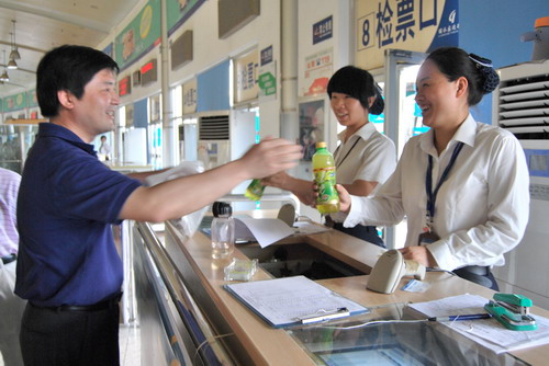 為做好夏季防暑降溫工作,今年集團(tuán)公司除發(fā)放清涼飲料費(fèi)外、還在給全體在崗員工每人發(fā)放了五豐冷食冷飲票。在做好員工的防暑降溫工作的同時(shí),集團(tuán)公司客運(yùn)東、西站候車廳所有空調(diào)全部啟用,客運(yùn)東站還打開吊扇,確保室內(nèi)空氣的流通,為旅客營造了舒適、清涼的候車環(huán)境,"流動(dòng)之家"服務(wù)班還在原來送茶水的基礎(chǔ)上,增添了送涼茶(金銀花茶)服務(wù)項(xiàng)目,受到旅客的好評。