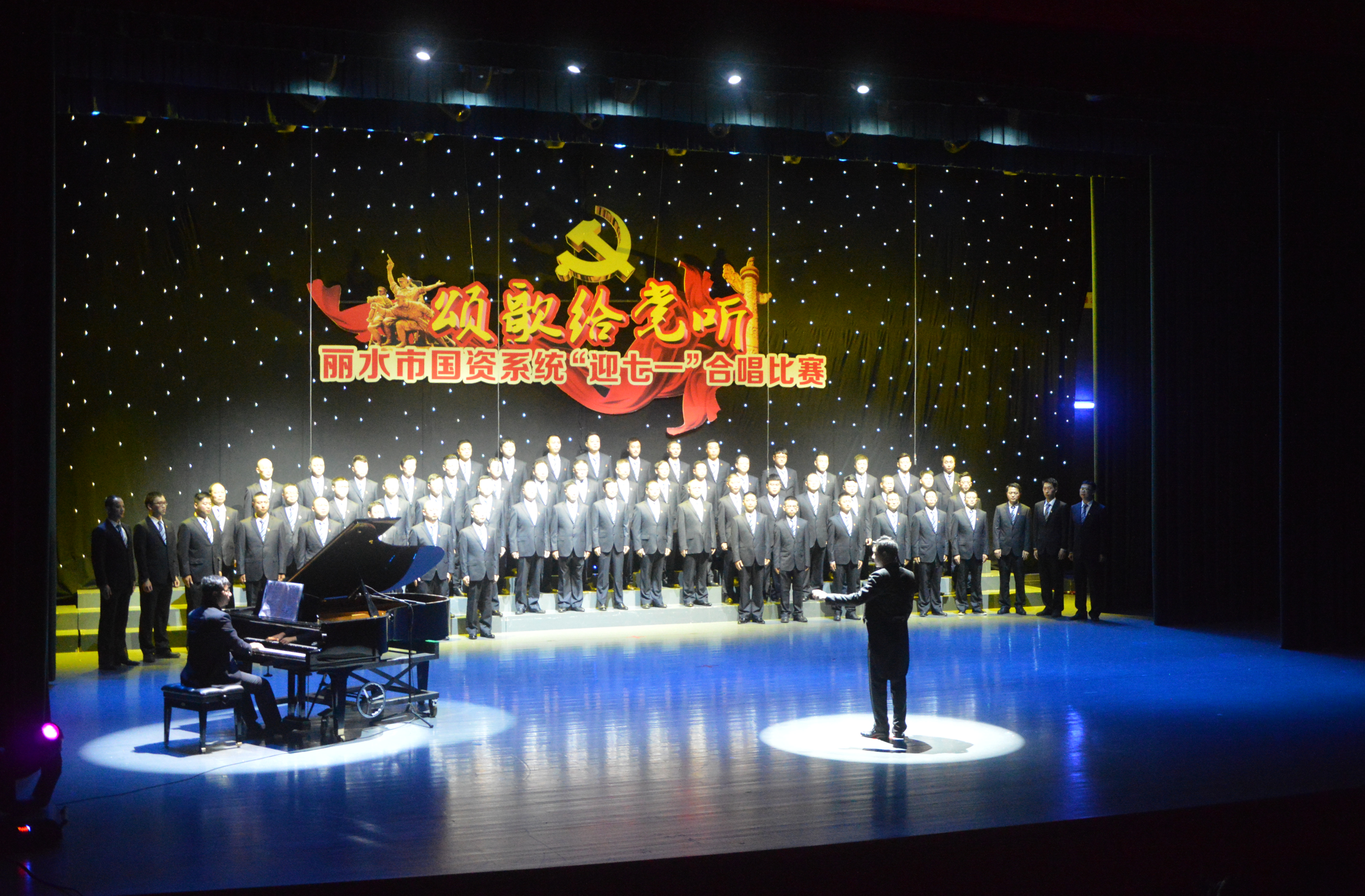 6月29日晚的蓮城劇場(chǎng)里,麗水市國(guó)資系統(tǒng)組織了一場(chǎng)主題為“頌歌給黨聽(tīng)”的“迎七一”合唱比賽,在主持人的介紹后,麗汽集團(tuán)合唱團(tuán)以一曲激情高亢的《天路》征服了所有在場(chǎng)觀眾。演員們身著司服上場(chǎng),胸佩黨徽,個(gè)個(gè)精神飽滿(mǎn)。三個(gè)聲部韻律清晰,天籟般的嗓音、蕩氣回腸的演唱,仿佛讓大家置身于壯闊的雪域高原,博得了評(píng)委及現(xiàn)場(chǎng)觀眾的陣陣掌聲。